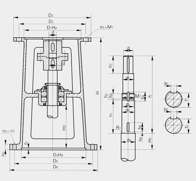 JXLD型 | d | JBLD型 | d | d1 | M1 | d2 | d3 | d4 | R1 | t1 | b1 | t2 | b2 | h1 | h2 | h3 | h4 | h5 | h6 | h7 | h |