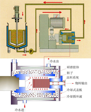 縮短漿料在磨腔內(nèi)的滯留時間,有效抑制溫度上升。通過循環(huán)冷卻水的冷卻,可實現(xiàn)低溫砂磨。