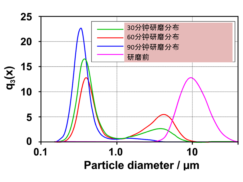粒度分布![]() 相比傳統(tǒng)磨機(jī),即使在相同的平均粒徑,它可以得到集中的粒度分布。 |